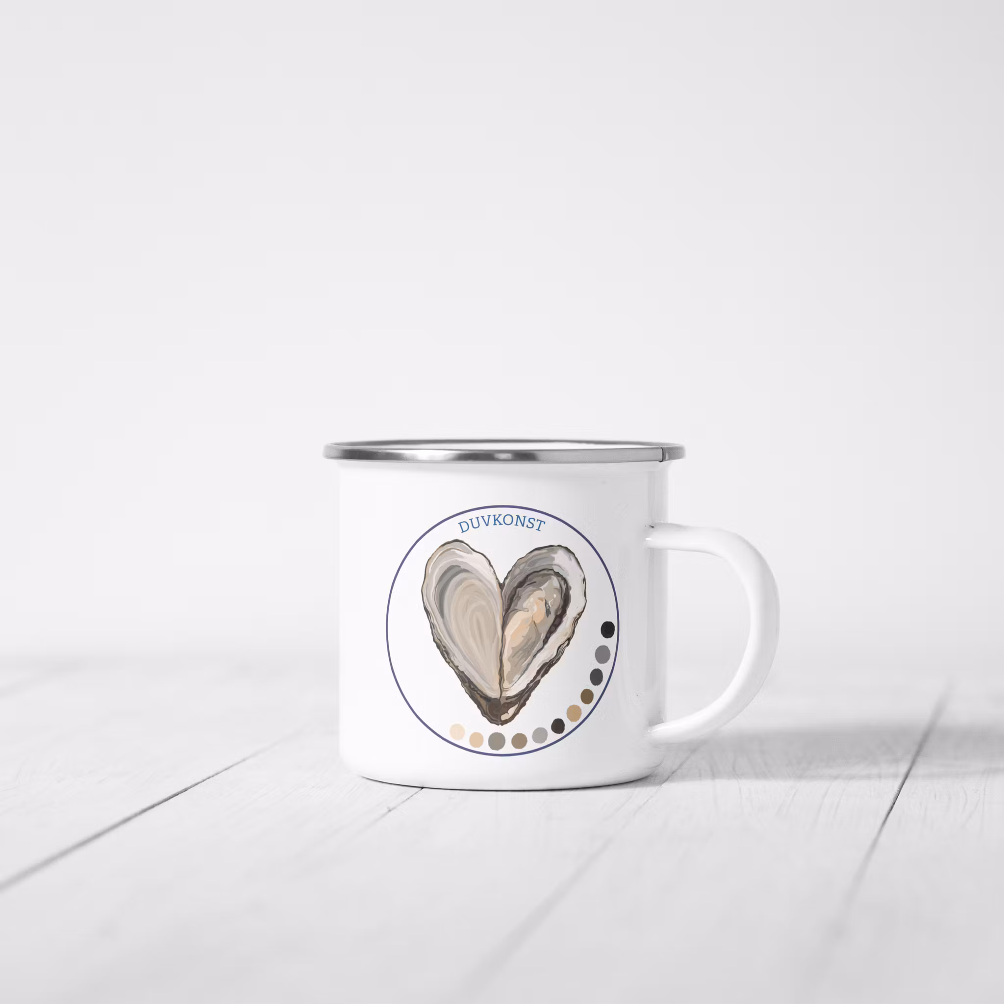 Tillverkad i metall med slitstark emaljbeläggning och förstärkt kant i rostfritt stål för ökad hållbarhet. Varje mugg trycks individuellt och levereras styckvis förpackad.
