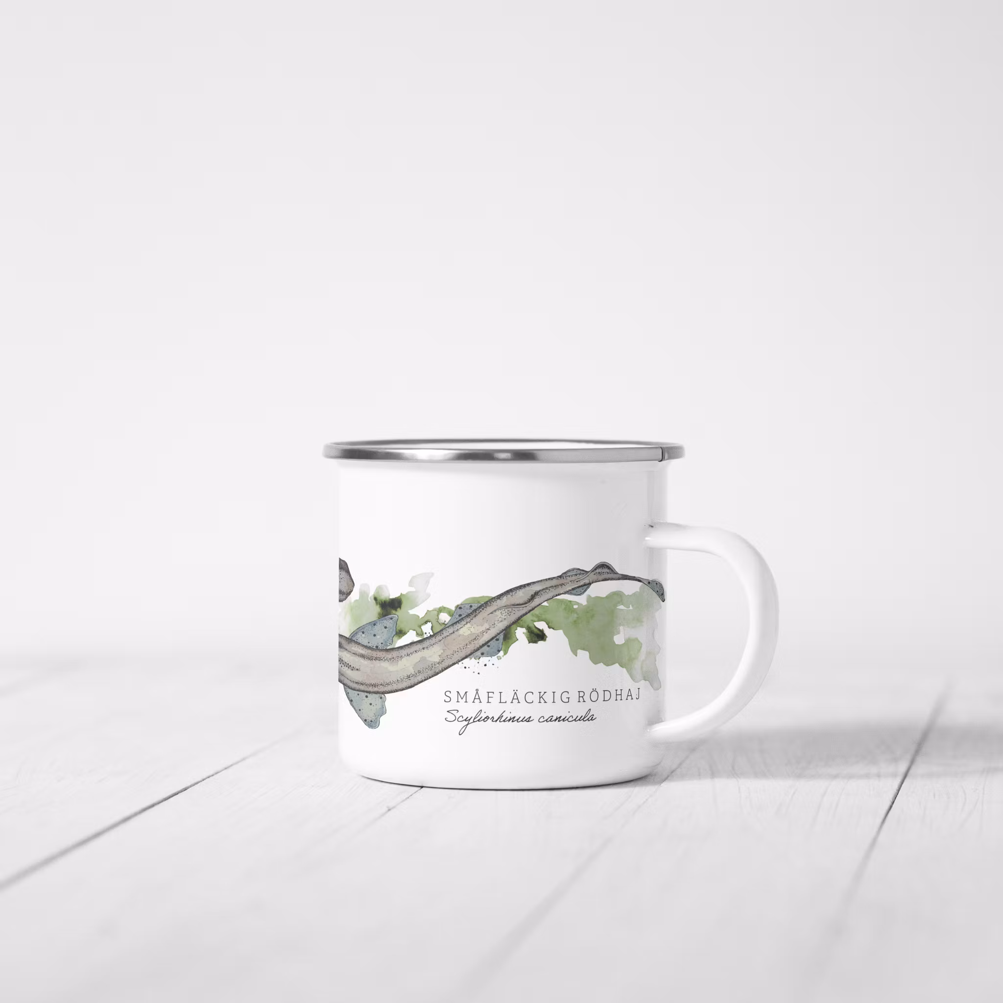 Tillverkad i metall med slitstark emaljbeläggning och förstärkt kant i rostfritt stål för ökad hållbarhet. Varje mugg trycks individuellt och levereras styckvis förpackad.