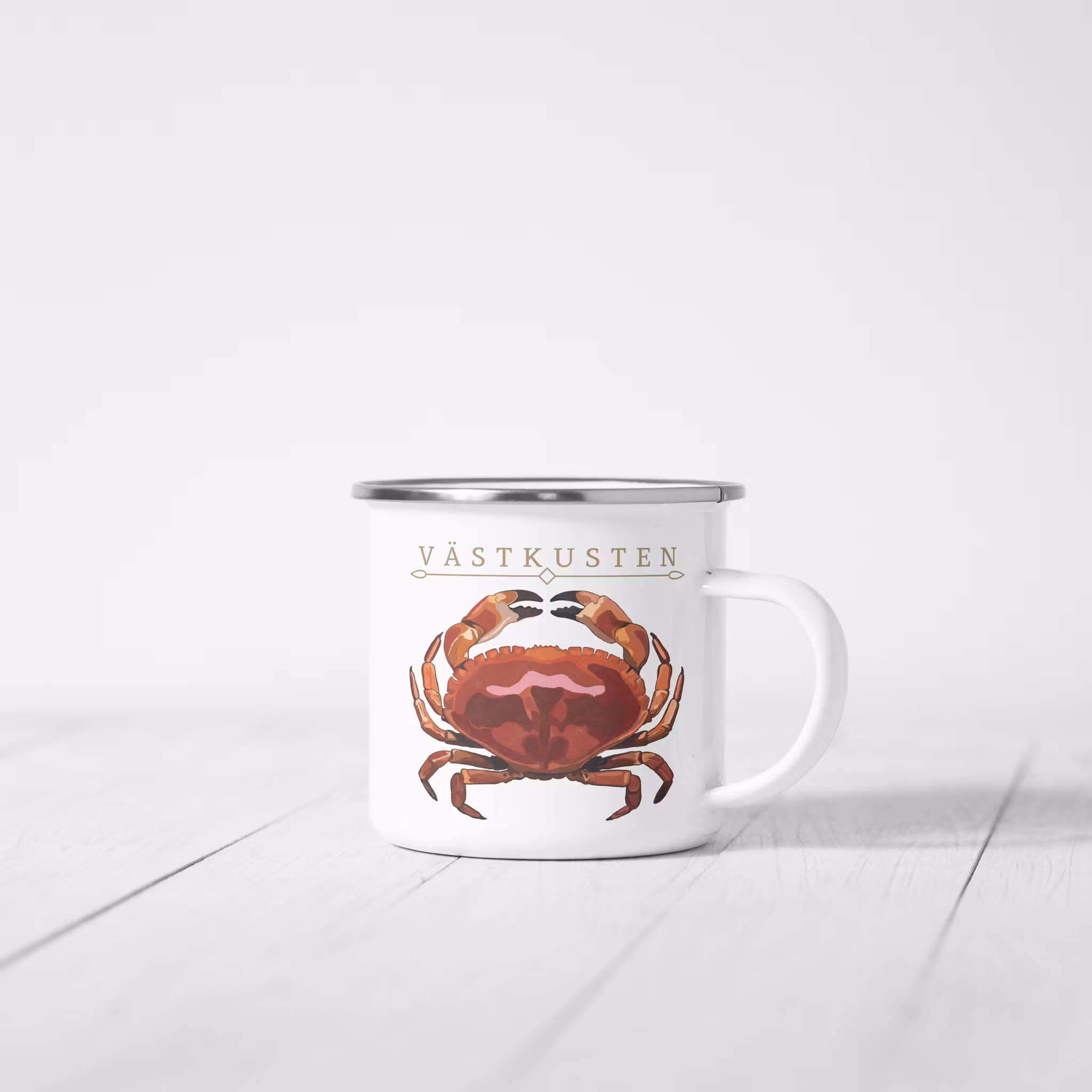 Tillverkad i metall med slitstark emaljbeläggning och förstärkt kant i rostfritt stål för ökad hållbarhet. Varje mugg trycks individuellt och levereras styckvis förpackad.