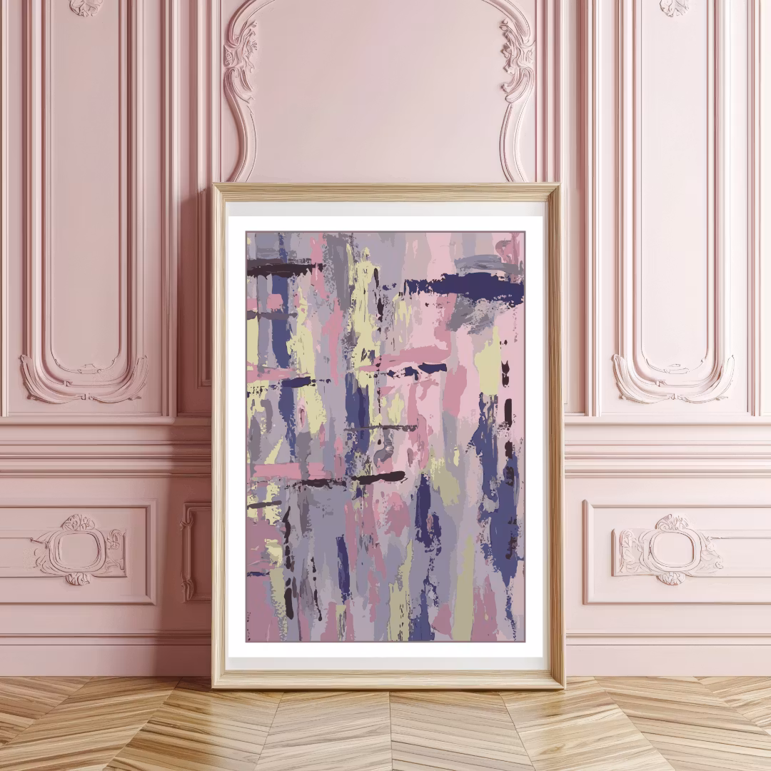 Ett spel mellan ljus och färg – där mjuka pasteller möter abstrakta drag. En poster som skapar rymd och lyfter känslan i rummet.