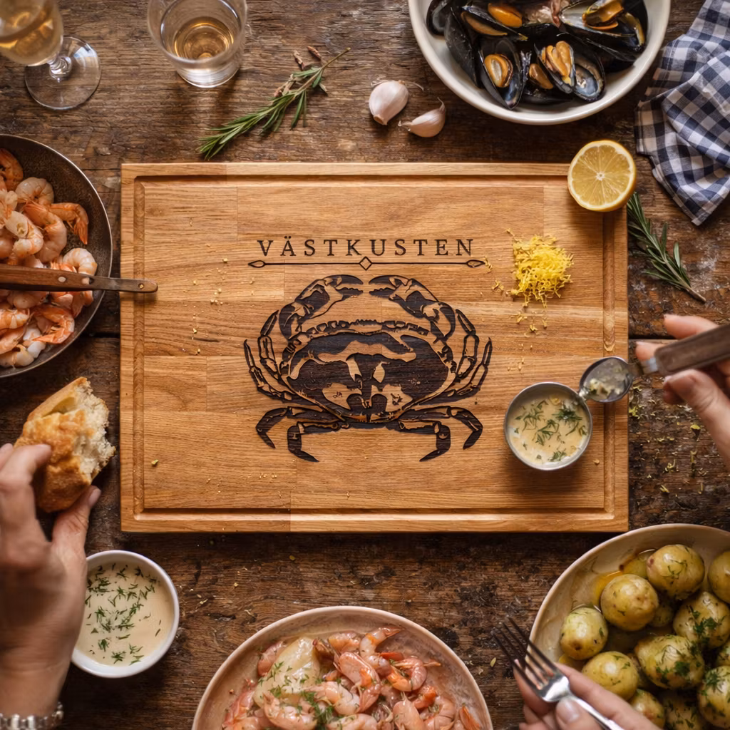 Denna skärbräda är tillverkad i svensk massiv ek i samarbete med ett lokalt snickeri på västkusten. Varje bräda formas av träets naturliga variation – ådring, struktur och färgskiftningar – vilket gör att varje exemplar är unikt.