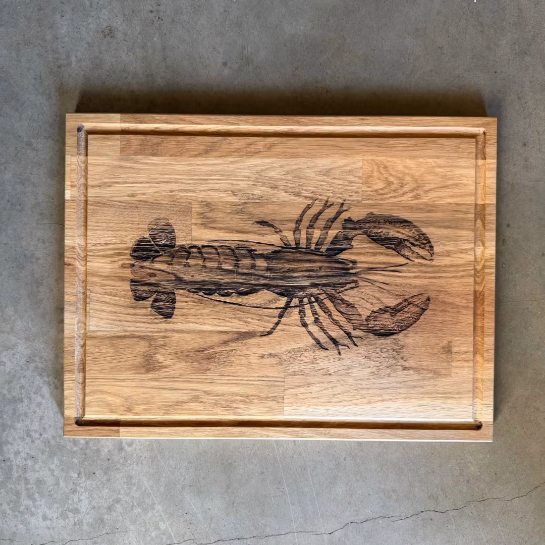 Denna skärbräda är tillverkad i svensk massiv ek i samarbete med ett lokalt snickeri på västkusten. Varje bräda formas av träets naturliga variation – ådring, struktur och färgskiftningar – vilket gör att varje exemplar är unikt.